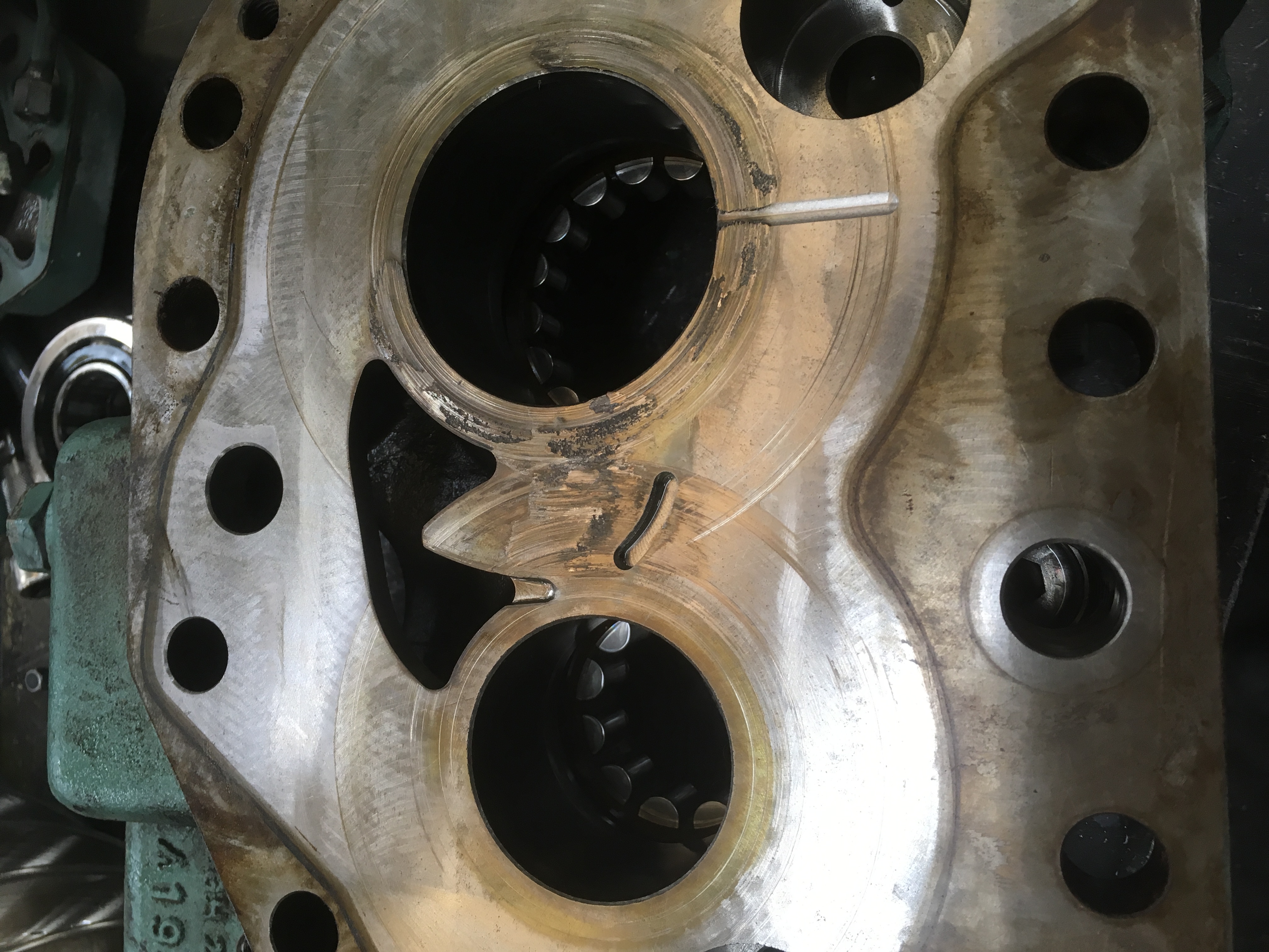 This particular screw compressor had been running longer than its recommended bearing run hours, the customer wasn’t aware that the bearings should be changed after so many hours (each manufacturer uses their own guidelines) this compressor ran until the bearings gave up. The failed bearings caused the male screw to grind into the discharge housing, the end result after stripping down was that the housing & the rotor had to be scrapped, my client had to break the bad news to his client & buy a brand new compressor. If a full inspection had of been implemented at the recommended schedule Screwgle would have remanufactured this compressor and could have stopped this from being an expensive job.